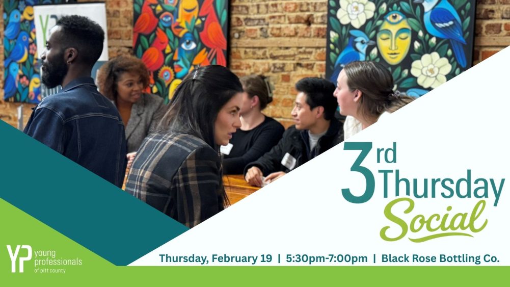 Step out, meet new people, and grow your network at the Young Professionals of Pitt County’s monthly 3rd Thursday Social! Connect with fellow young professionals from across our community while checking out a venue we haven’t visited before - Black Rose Bottling Co. Expect great conversation, new connections, and a laid-back atmosphere that makes it... View Article |